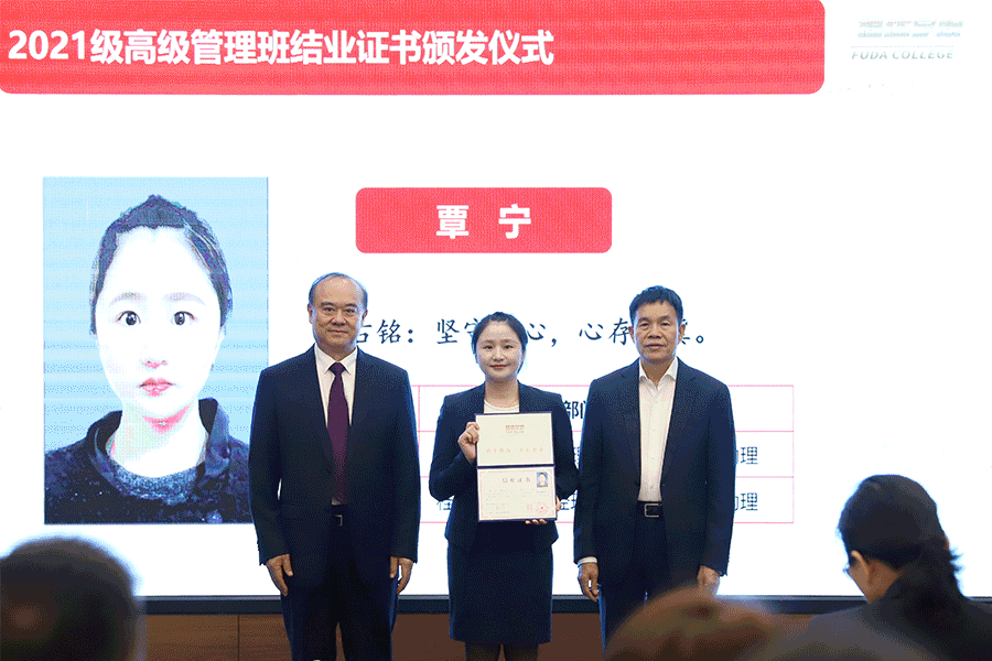 结业典礼上,公司领导和指导老师们为2021级高级管理班获得“优秀班干”、“特别优秀学员”、“优秀学员”和“优秀毕业论文”的学员颁奖。连漪院长宣读了毕业学员名单,并与黎福超董事长一同为每一位学员单独颁发结业证书。