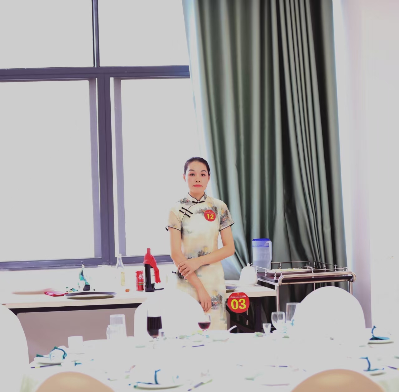 餐厅服务员实操考核要求选手在餐桌上为客人提供个性化菜肴和饮料服务,并能独立完成宴会设计、装饰、布置、菜单安排、酒水服务、菜肴服务。餐饮部黄诗佳、黄兴丽凭借精湛的专业技能和创新思维分别荣获优胜奖第五名、第六名。