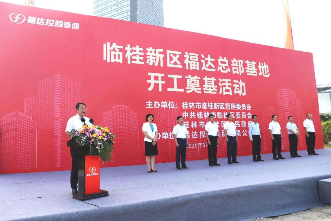 2020年8月18日上午,临桂新区福达总部基地项目开工奠基活动在“一院两馆”旁的项目地隆重举行。自治区人大常委会副主任、桂林市委书记赵乐秦出席活动并宣布项目正式开工。
