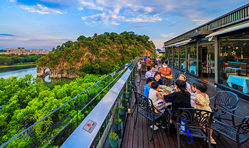 餐厅270°无遮挡的观景平台,零距离欣赏桂林城徽——象山全景。